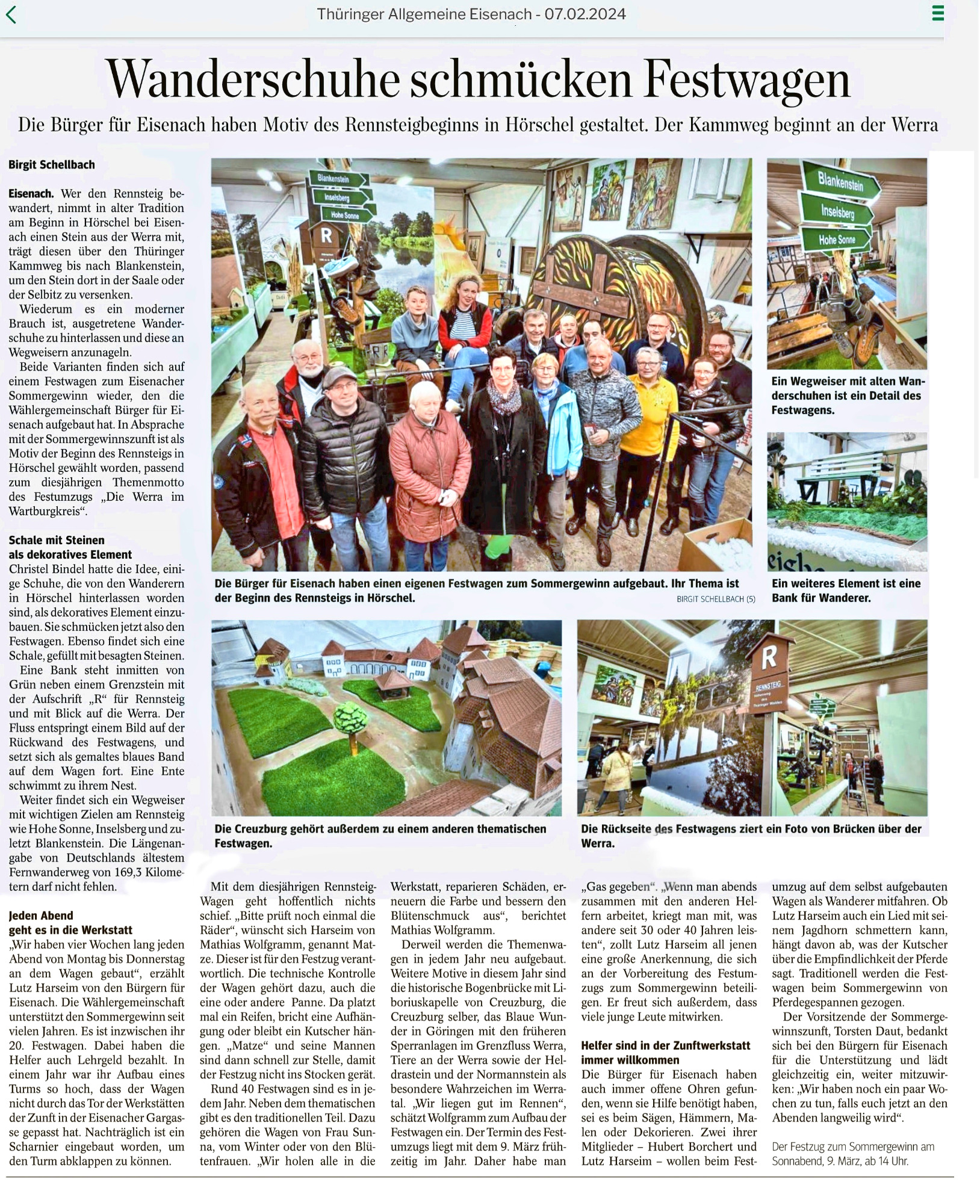 - Als einzige der im Stadtrat vertretenen Bürgervertretungen unterstützen wir aktiv Jahr für Jahr die Sommergewinnszunft: Unsere Mitglieder bauen für den Sommergewinnsumzug einen eigenen Wagen nach selbst entworfenen Motiven. Wir helfen beim Umzug und beim Binden der unzähligen Blüten, die den Sommergewinnszug, die Wagen und die Laufgruppen schmücken.